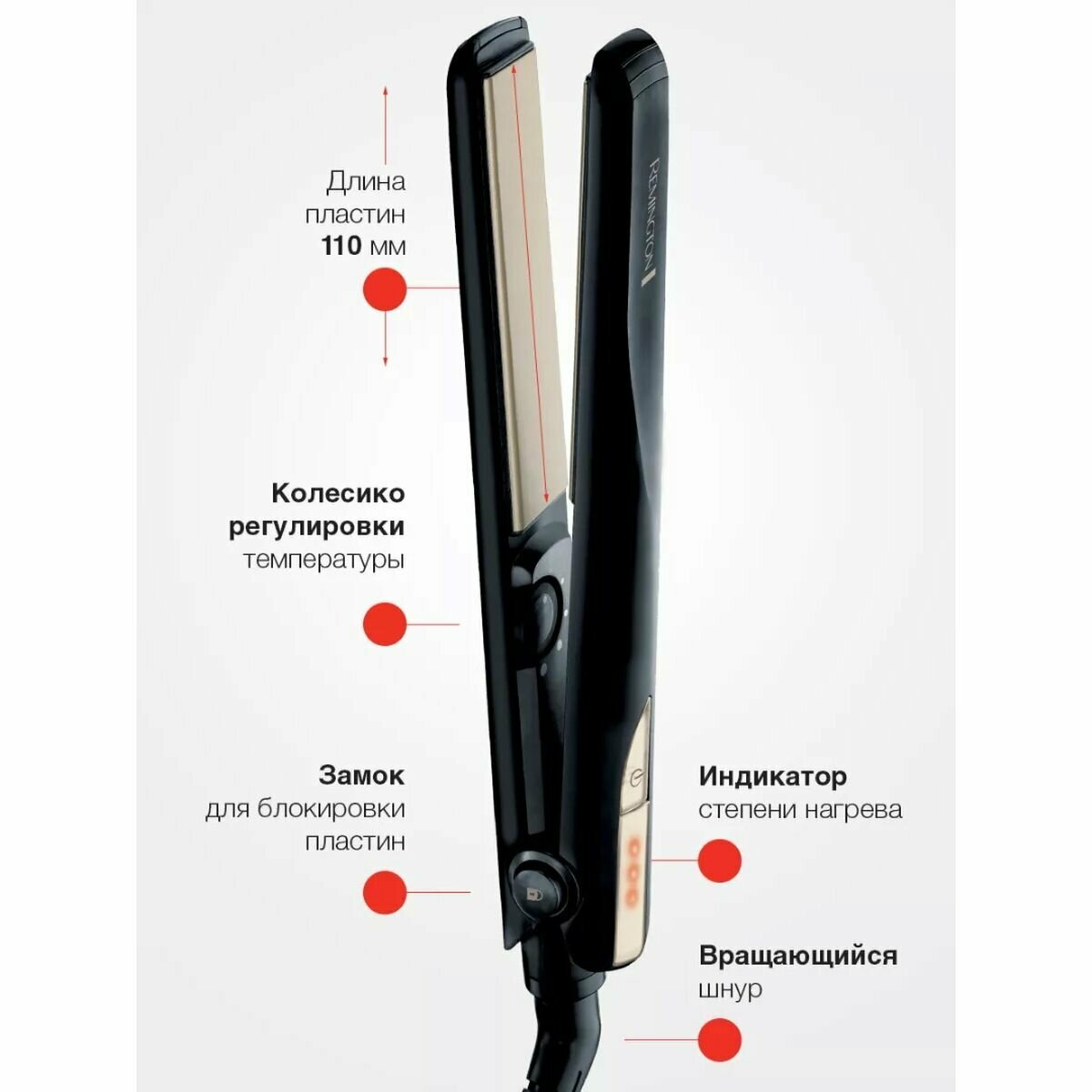 Выпрямитель для волос Remington Ceramic Straight 230 S1005, 48 Вт, вращение шнура на 360 градусов, максимальная температура 230 градусов интересное: