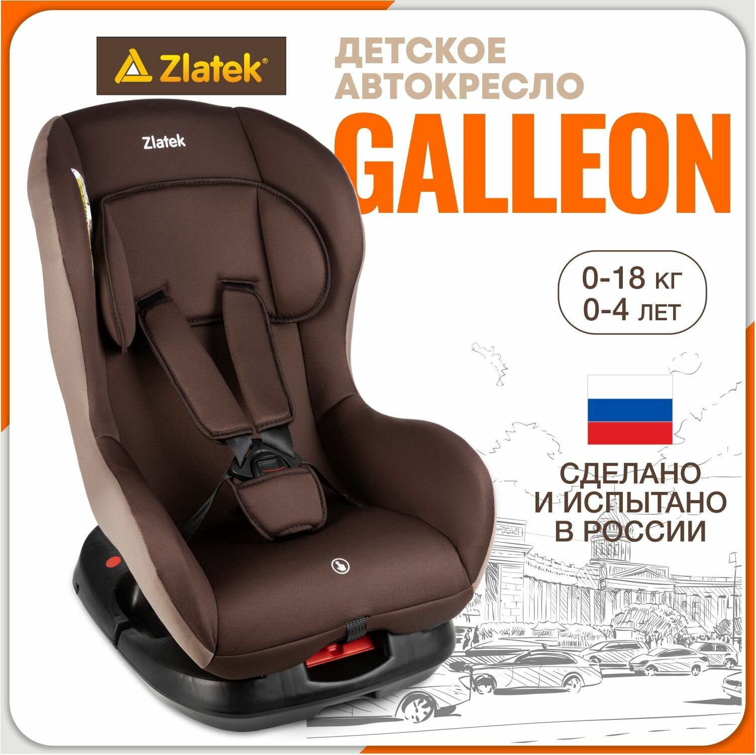 Детское автомобильное кресло ZLATEK KRES0169 Galleon 0+1 до 18 кг, коричневый