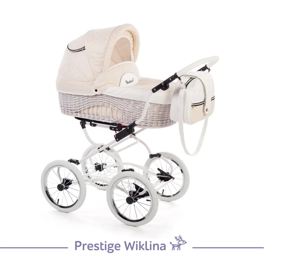 Купить Коляска детская универсальная Reindeer Prestige Wiklina цвет бежевый+белый (W6), 3в1 люлька+прогулочный блок+автокресло, увеличенная люлька, всесезон