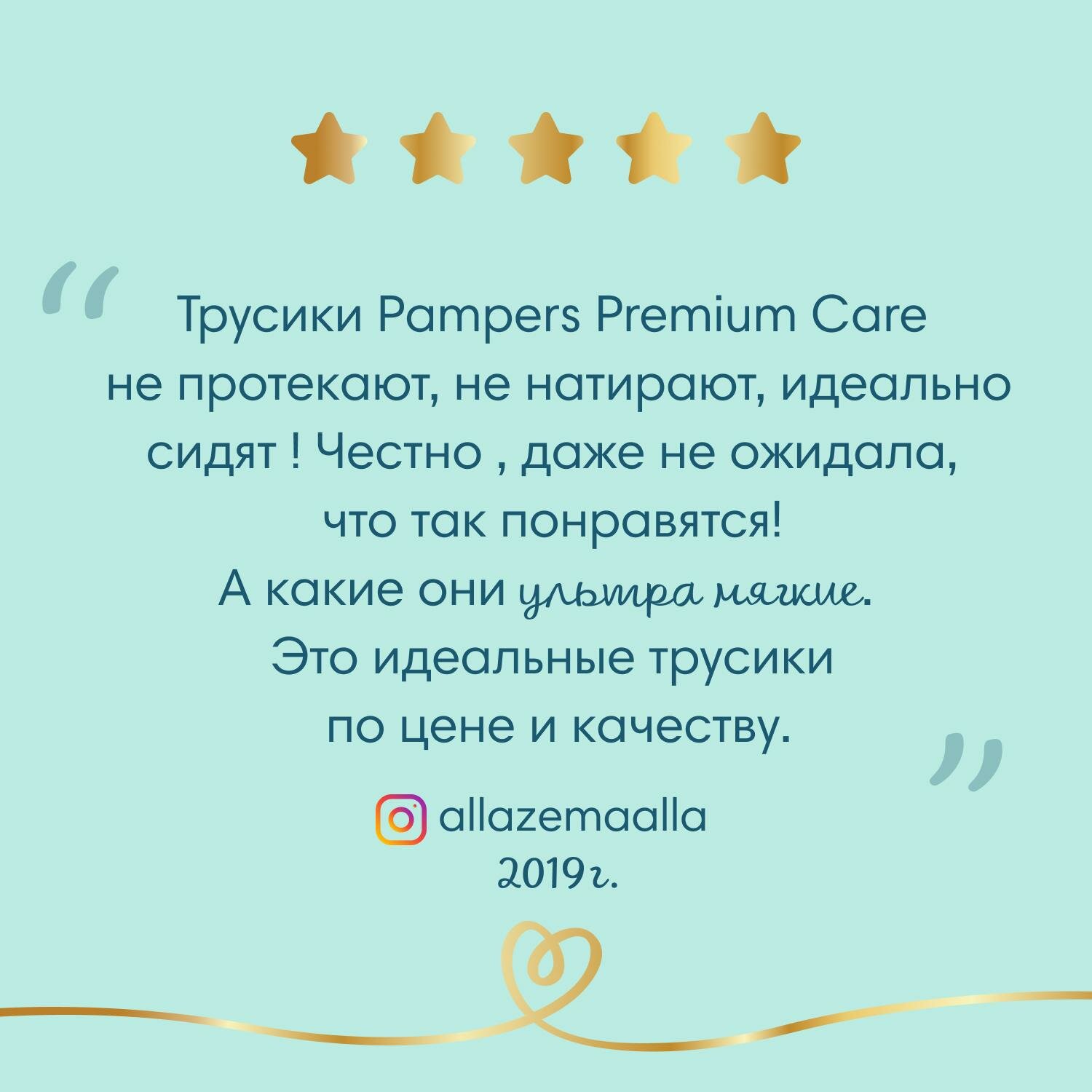 | Отзыв: | Подгузники - Трусики pampers premium care для просто находка. Очень лёгкие и удобные трусики, удобный индикатор и забавный дизайн. Для меня очень важно что они без отдушки , тк у ребёнка была аллергия на отдушку. Обновлённые памперсы просто супер , не проникают и не натирают