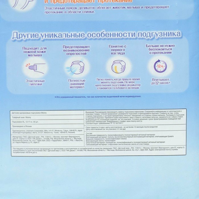Ниже Вы можете прочитать отзывы на Подгузники детские Moony Extra Soft 5 XL 12-17 кг, 44 шт, ознакомится с подробными характеристиками, посмотреть интересные обзоры и фотографии на Подгузники детские Moony Extra Soft 5 XL 12-17 кг, 44 шт.