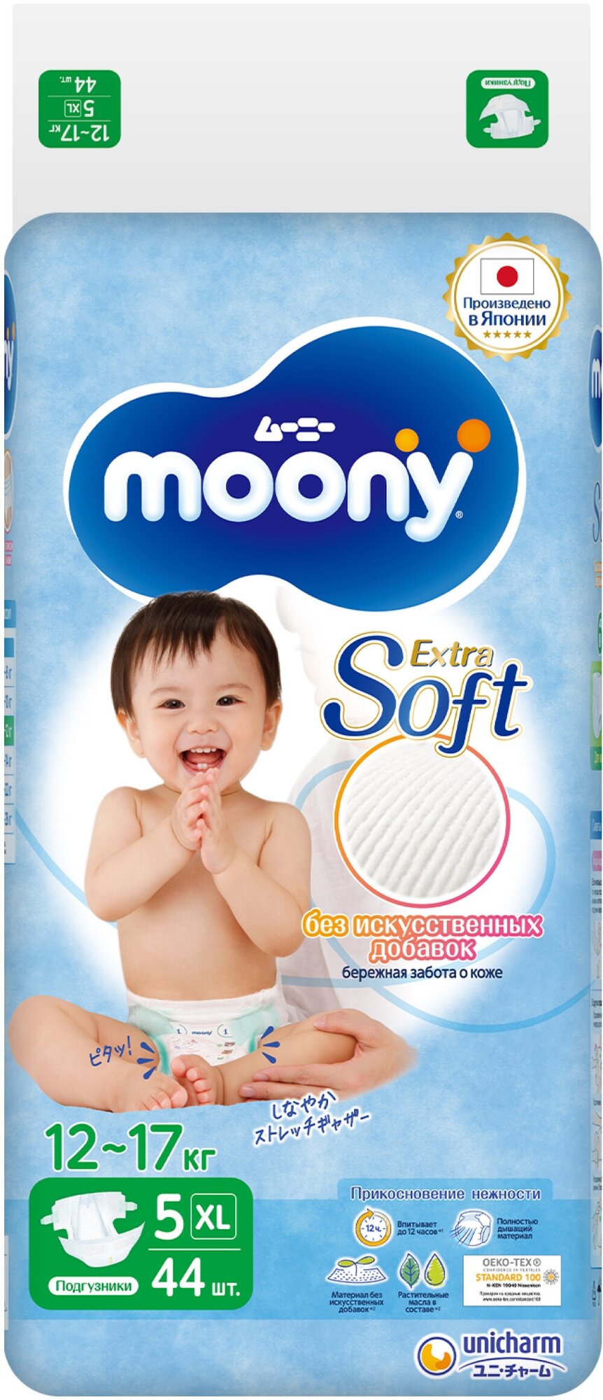 Купить Подгузники детские Moony Extra Soft 5 XL 12-17 кг, 44 шт