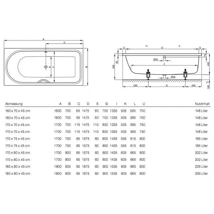Стальная ванна 170x80 см Bette Ocean 8865-000