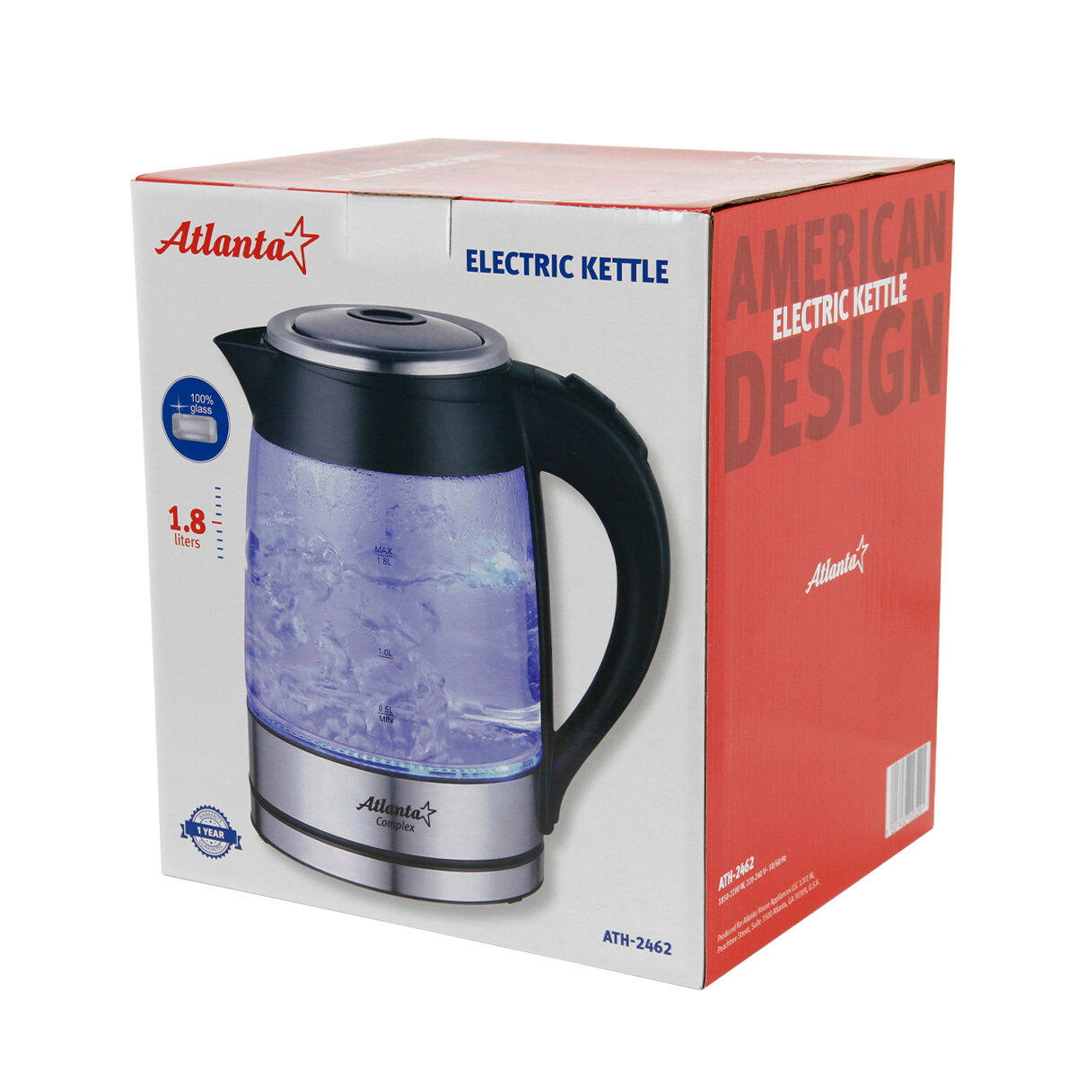 Чайник электрический ATLANTA ATH-2462 1,8л, 2000 Вт, стекло черный