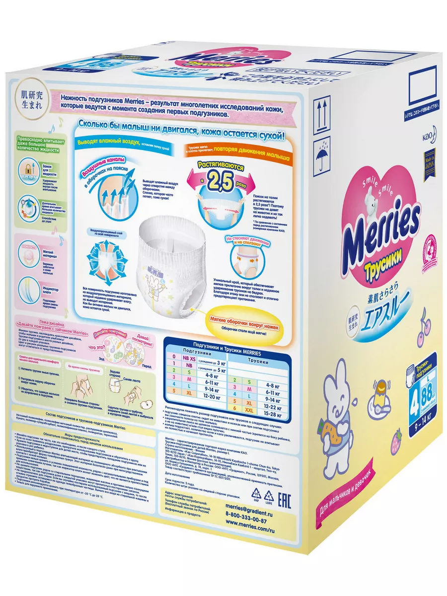 Купить Трусики-подгузники Merries для детей, размер L, 9-14 кг, 88 шт (62020314)