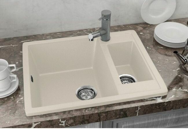 Кухонная мойка Карельский камень модель 150 (575*470) Q6 Слоновая кость