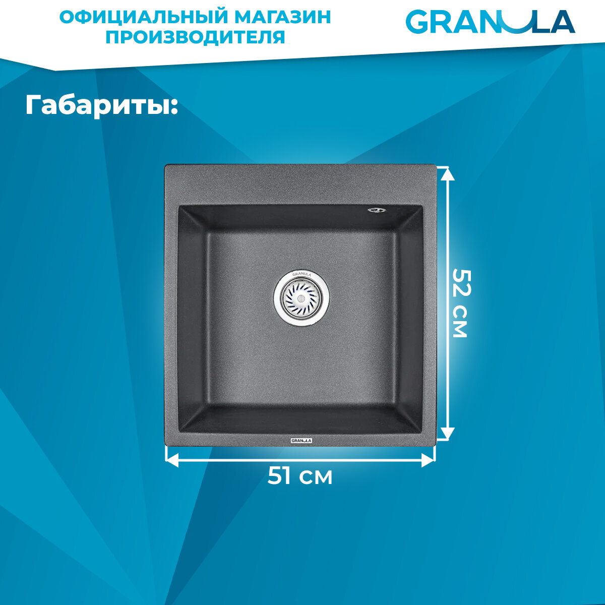 Кухонная мойка Granula GR-5102 кварцевая 505*510 мм шварц