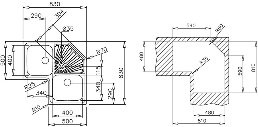 Врезная кухонная мойка 83 см, TEKA Angular 2B, полированное полированная сталь интересное:
