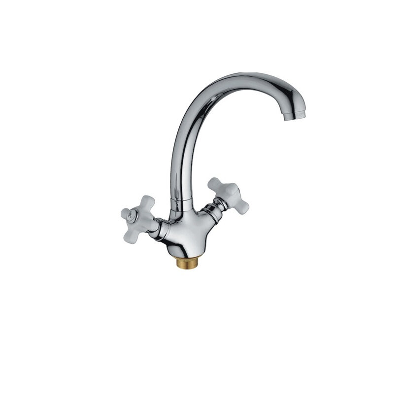 Смеситель для кухни Haiba HB4218 с керамическими ручками с гайкой, хром