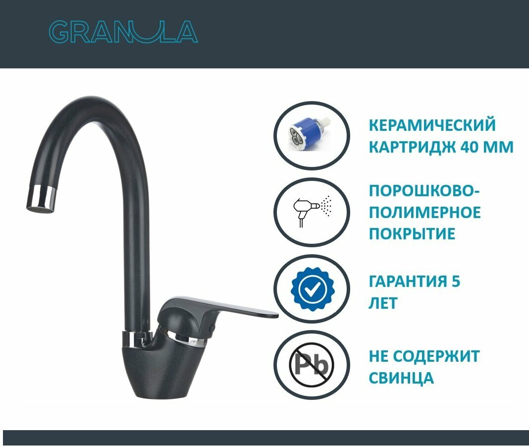Смеситель Granula GR-1024 базальт, для кухонной мойки