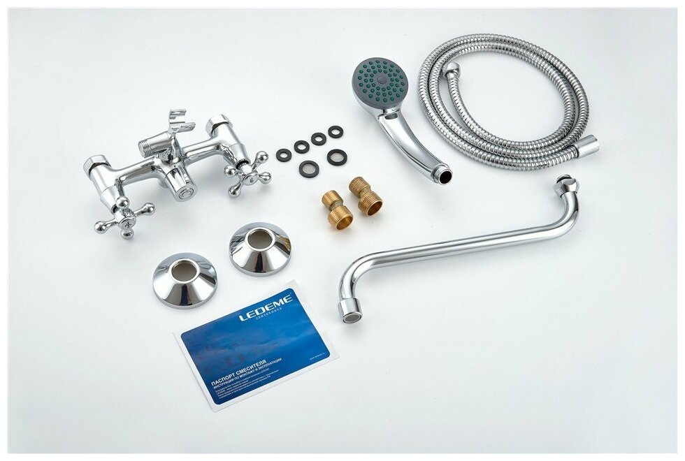 Смеситель для ванны с душевой лейкой и изливом 30см Ledeme L2308 хром, латунь