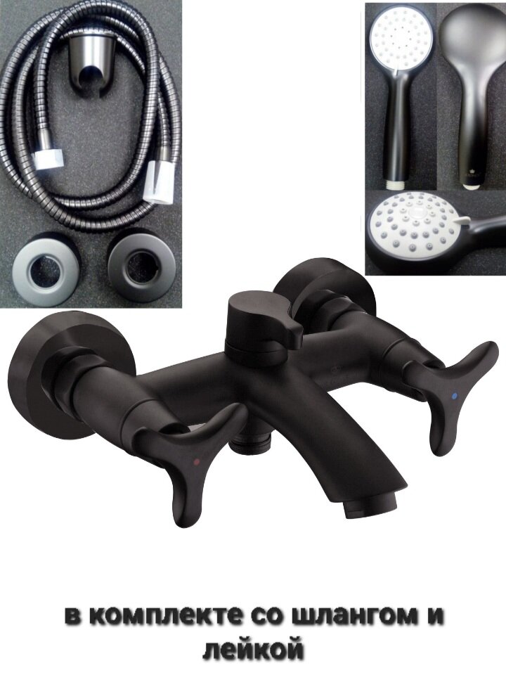 Смеситель для ванны с душем KAISER Trio - 57022-2 (двухвентильный, цвет черный)