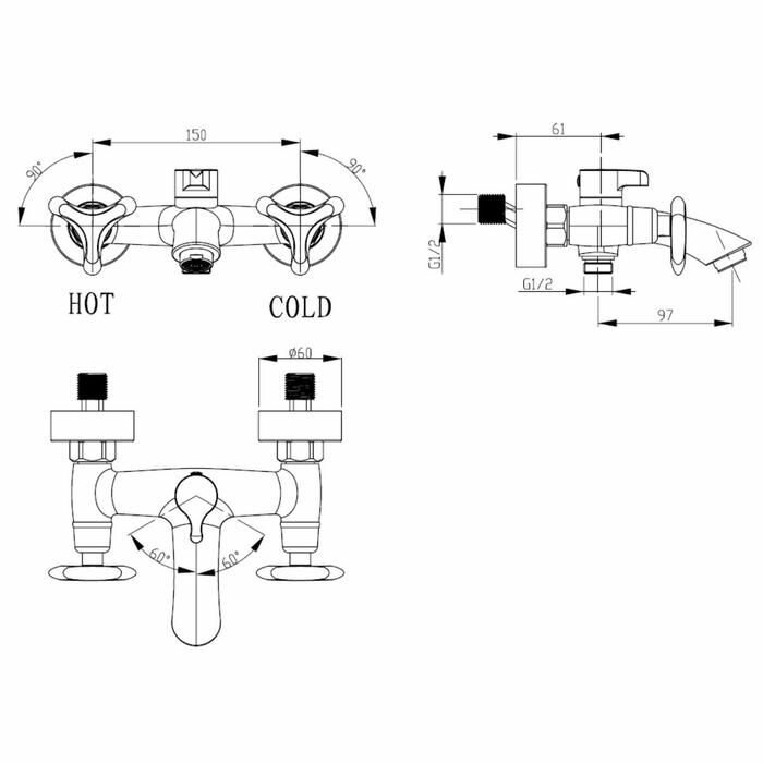 Смеситель Kaiser 57022-2 Trio для ванны