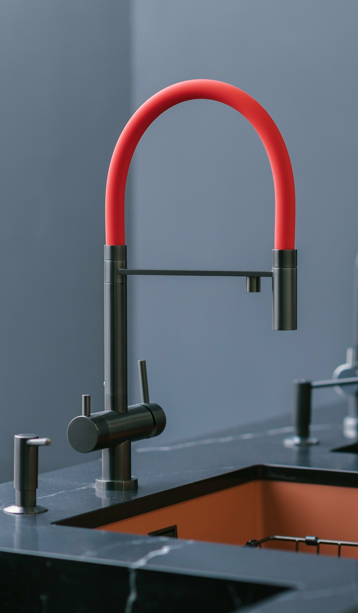Смеситель для кухни Omoikiri Kanto PVD-GM вороненая сталь/красный (4994013)