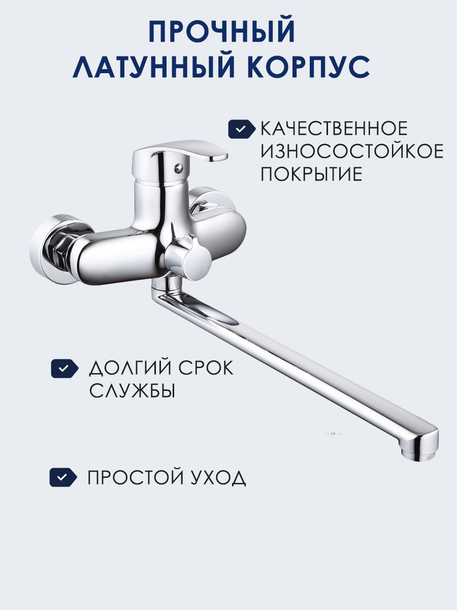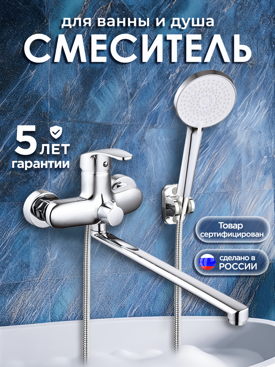 Смеситель для ванны с душем с длинным изливом