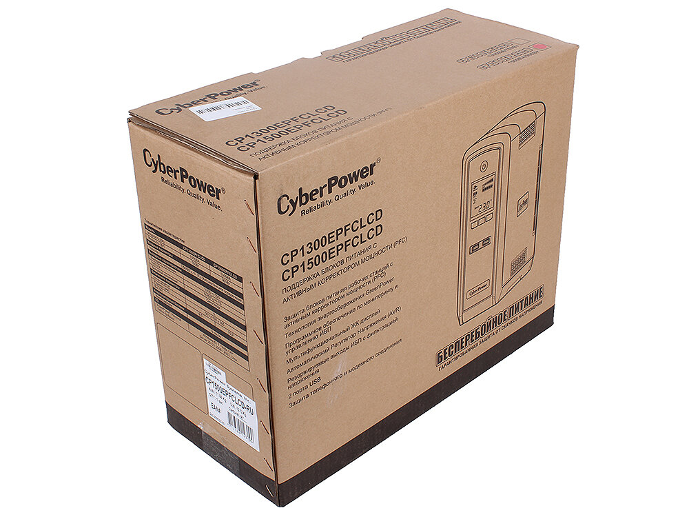 Источник бесперебойного питания CyberPower CP1500EPFCLCD line-interactive, 1500VA/900W, вход 165-265V, батарея 8.5Ач*2, 6*EURO, RJ11/45, ЖКД, AVR