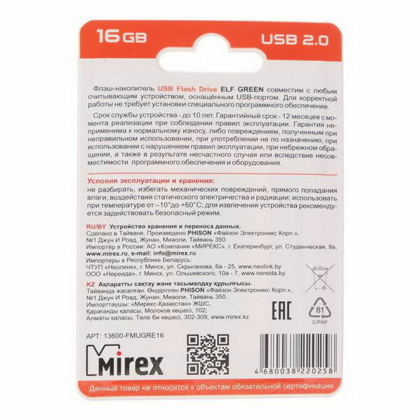 Ниже Вы можете прочитать отзывы на USB Флеш-накопитель MIREX ELF GREEN 16GB, ознакомится с подробными характеристиками, посмотреть интересные обзоры и фотографии на USB Флеш-накопитель MIREX ELF GREEN 16GB.