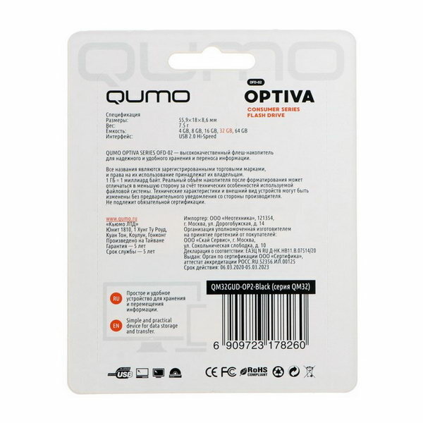 Накопитель USB 2.0 32Гб QUMO Optiva 02, черный