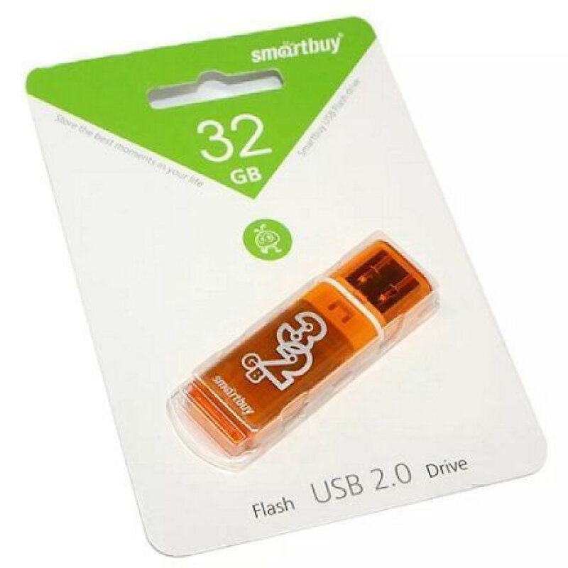 Флеш-карта SmartBuy Glossy series Orange, 32 Гб, USB 2.0, чтение до 25 Мб/с, оранжевая