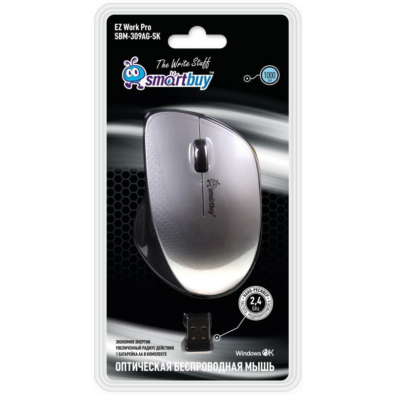 SmartBuy EZ Work Pro Wireless Optical Mouse (sbm-309ag-wl) (rtl) USB 3btn+Roll, беспроводная .