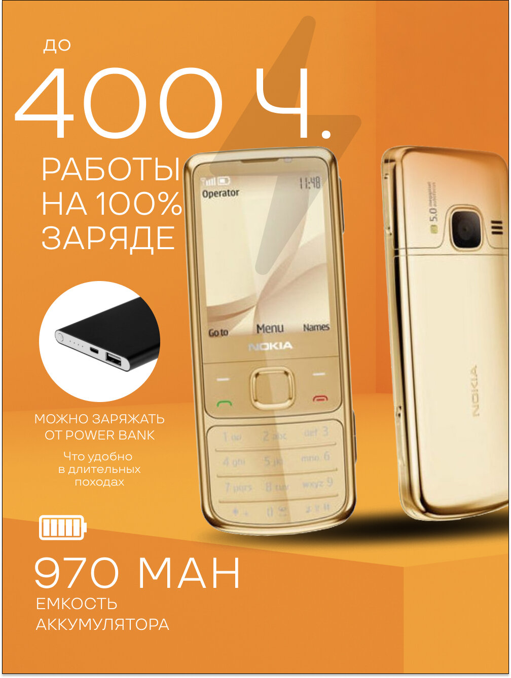 Nokia 6700 - кнопочный мобильный телефон с Bluetooth, емкостью аккумулятора до 1 000 мАч