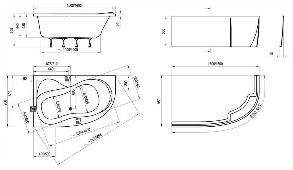 | Дополнительная информация | правосторонняя или левосторонняя; опции: панель, шторка, подголовник, ручки, хромотерапия |