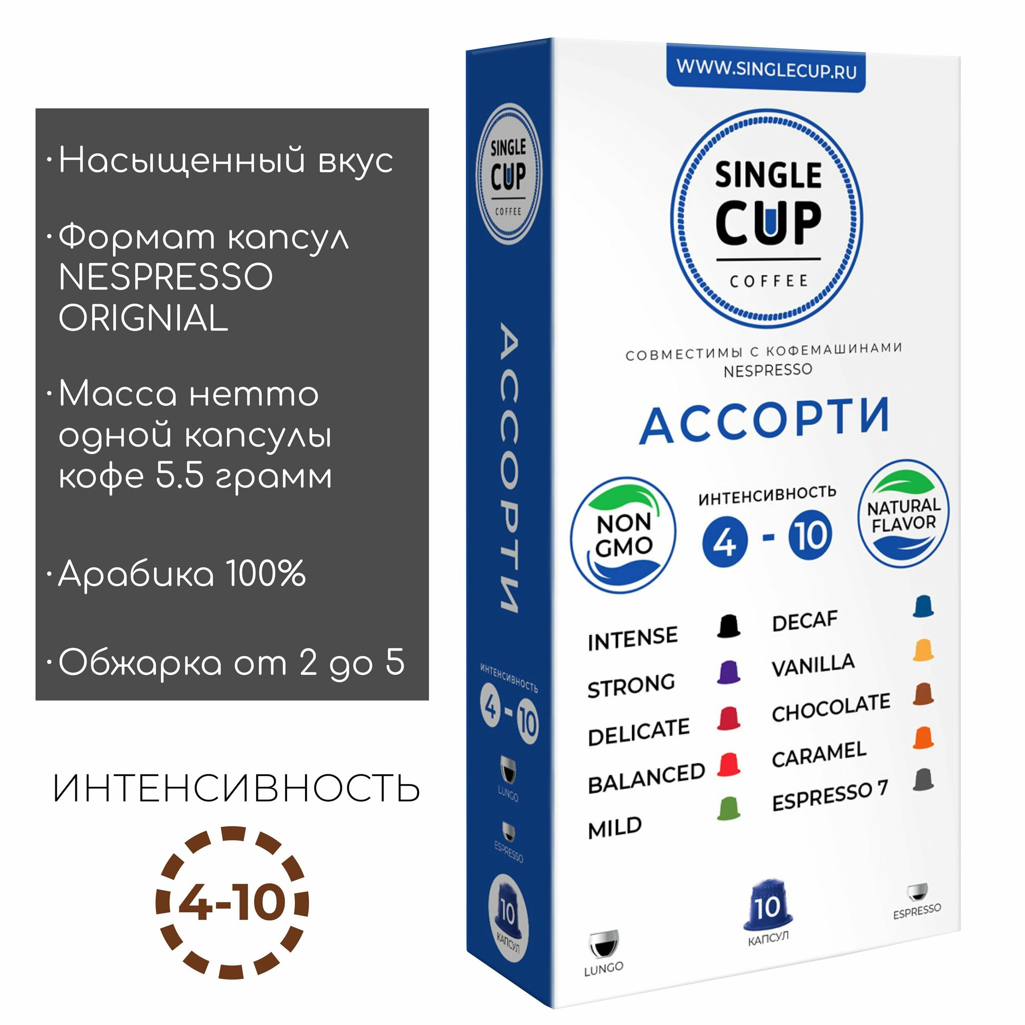 Кофе в капсулах Single Cup Coffee "Ассорти" формата Nespresso (Неспрессо), 10 шт. интересное: