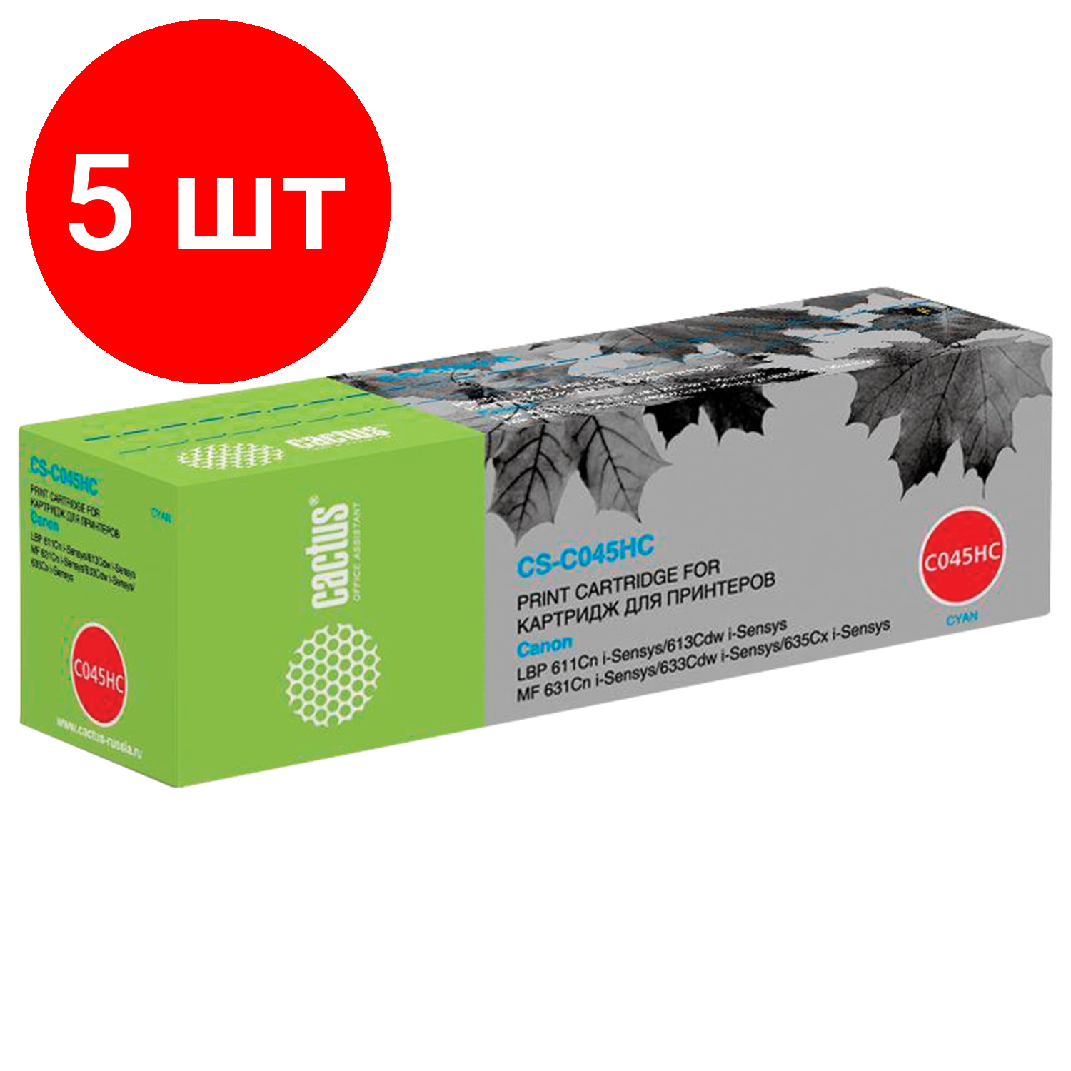 Картридж лазерный CACTUS (CS-045HC) для CANON MF635/633/631/LBP 611/613, голубой, ресурс 2200 стр., CS-C045HC В комплекте: 1шт.