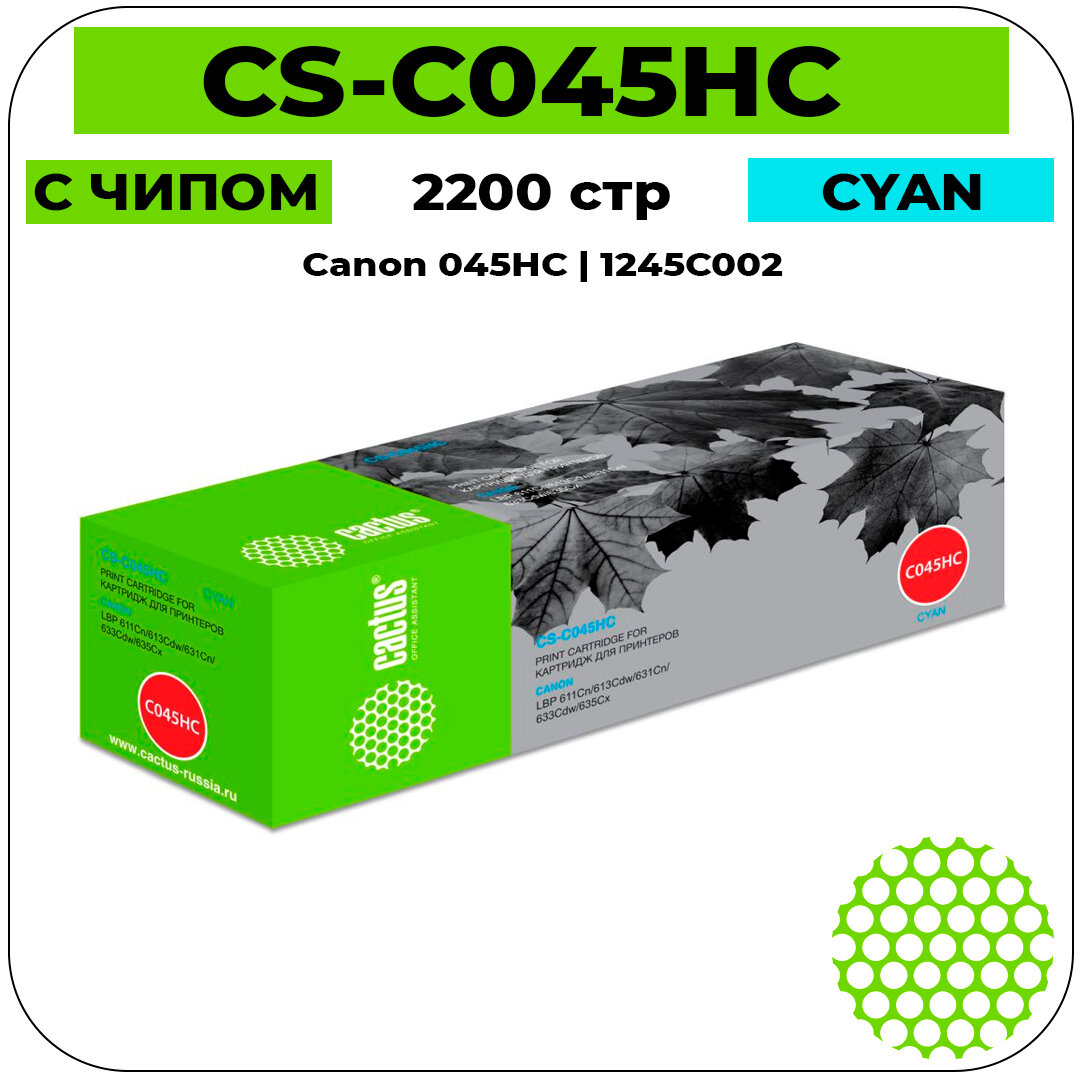 Картридж лазерный Cactus CS-C045HC 045 H C голубой (2200стр.) для Canon LBP 611Cn/613Cdw/631Cn/633Cdw/635Cx