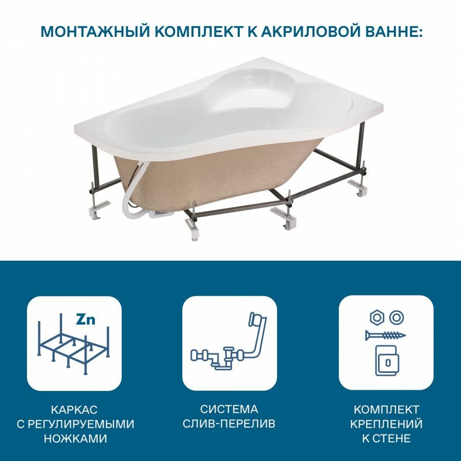 Ванна акриловая Santek Ибица 150х100 правая, каркас, слив-перелив 1WH112035
