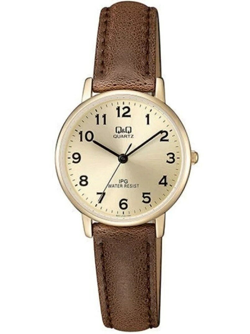 Наручные часы Q&Q женские QZ01 J103 кварцевые, водонепроницаемые, коричневый