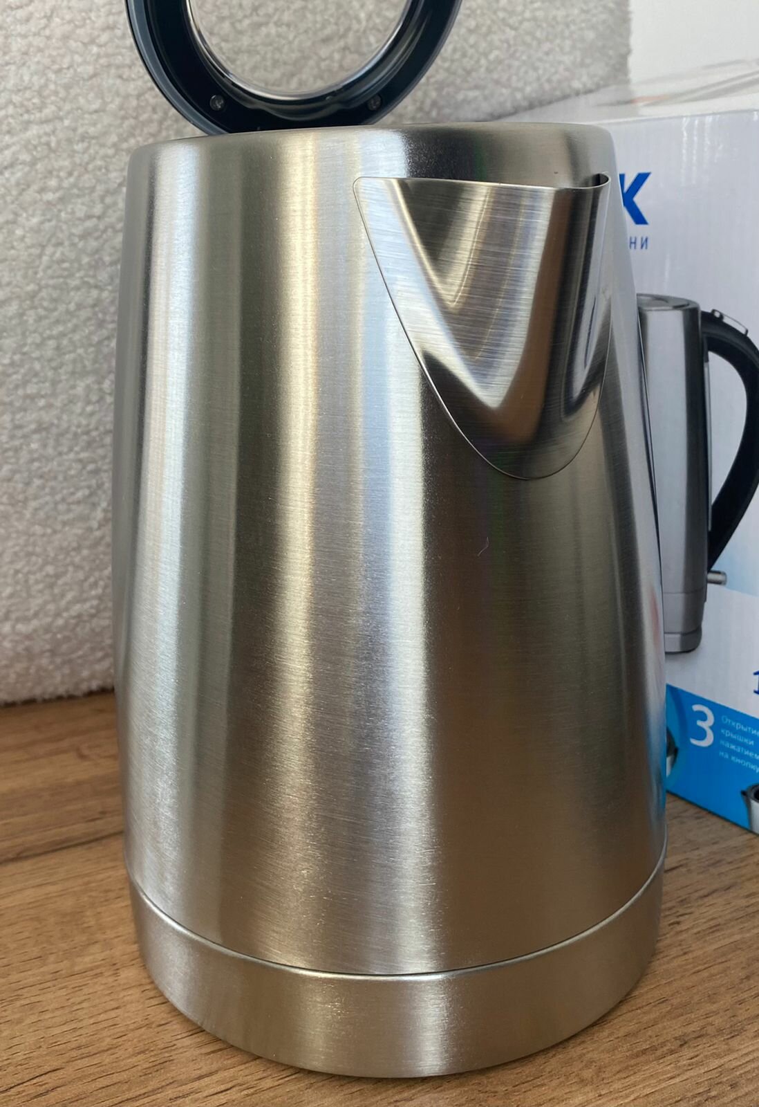 | Отзыв: | При выборе главным критерием был выбран материал корпуса либо метал, либо стекло. А так же желательное отсутствие окна уровня воды. И конечно цена. Остановился на этой модели и решил посмотреть фотографии с разных сторон, чтобы окончательно определится с выбором. Но оказалось что даже на официальном сайте она всего одна и весьма не информативна. Поисковик впрочем, тоже на то время ничего кроме этой же фотографии не предложил. Уже после заказа в интернет-магазине увидел, что в нем все таки есть окно с уровнем воды. И даже прозрачное окошко на крышке. В итоге самим чайником остался доволен. Но решил добавить немного информации для людей, которые возможно захотят купить данную модель.