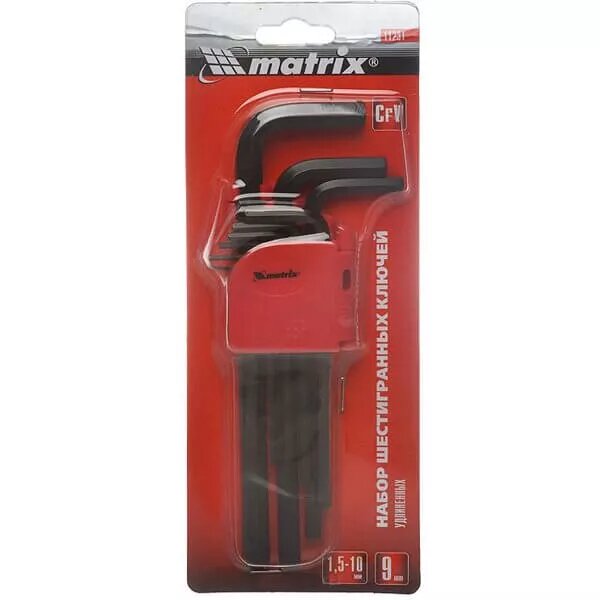 MATRIX Набор ключей имбусовых HEX, 1,5-10 мм, CrV, 9 шт, удлиненные Matrix, ( 11231 )