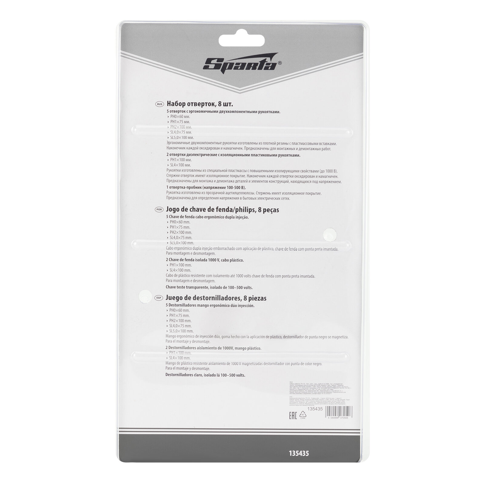 Набор отверток, PH, SL - 5шт., д/эл. - 2шт., проб.эл.на 220В - 1шт., 8 предметов Sparta 135435