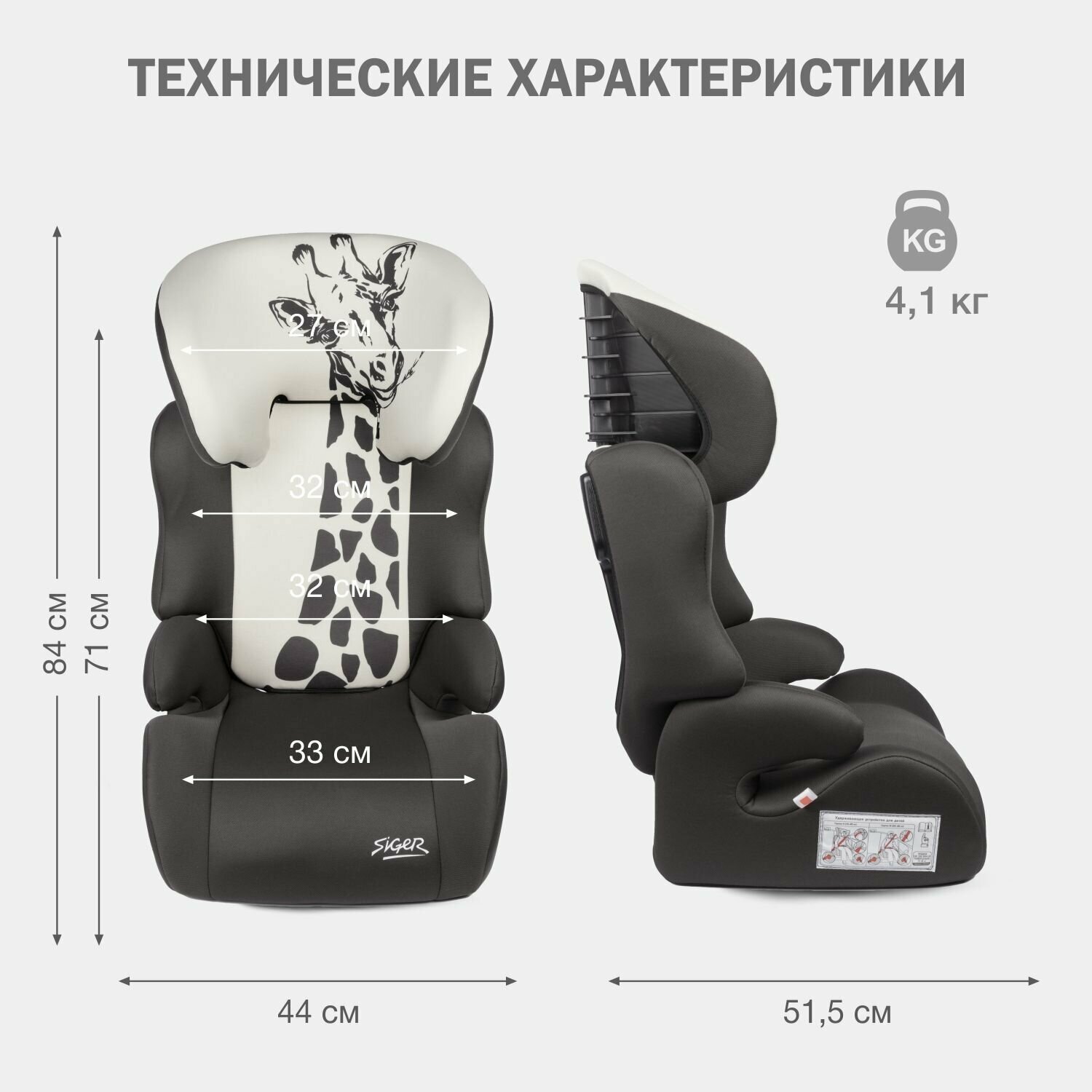 Автокресло детское Siger Смарт Жираф, от 15 до 36 кг