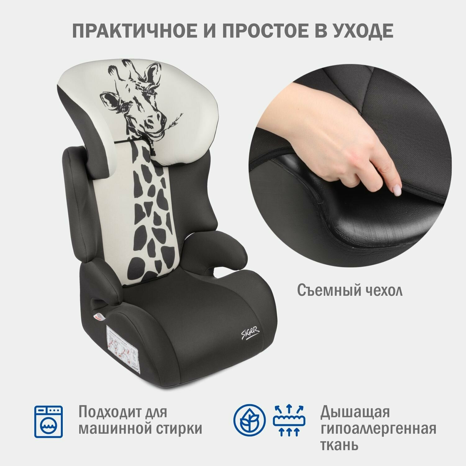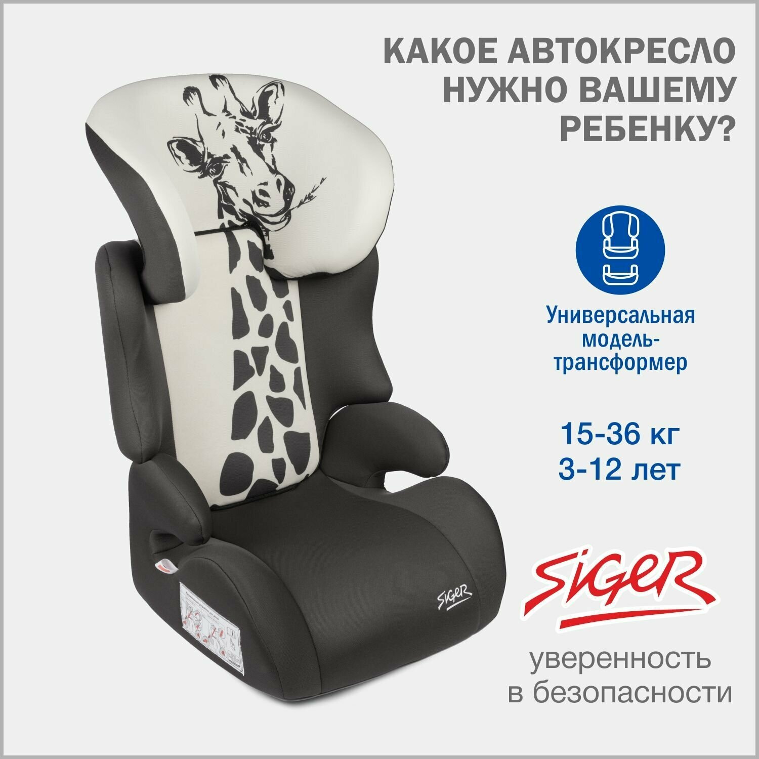Удерживающее устройство для детей SIGER "Смарт" серо-бежевый, жираф, гр. II/III, 15-36 кг, 3-12 лет