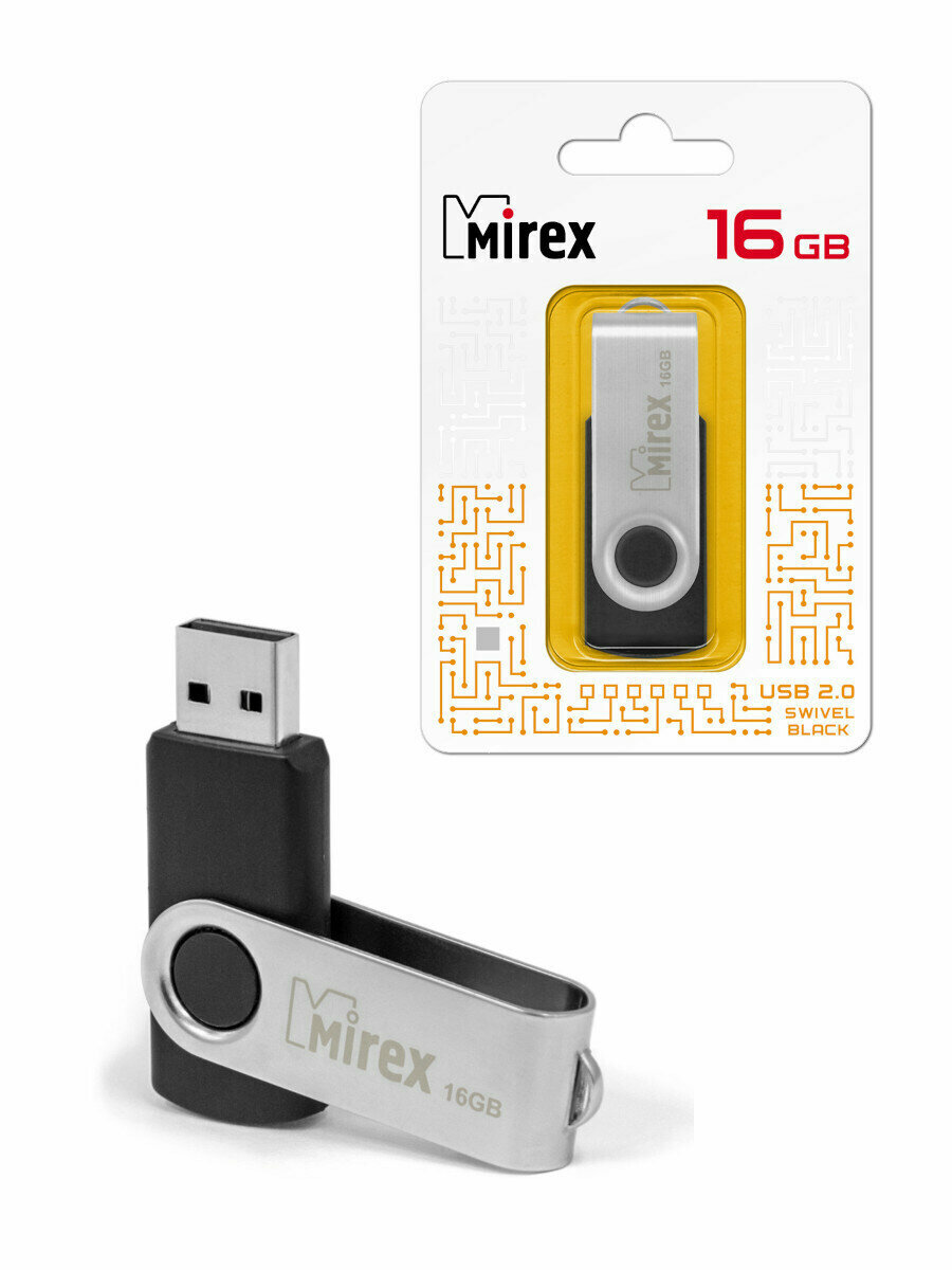 Флешка 16GB Mirex Swivel, USB 2.0, Черный
