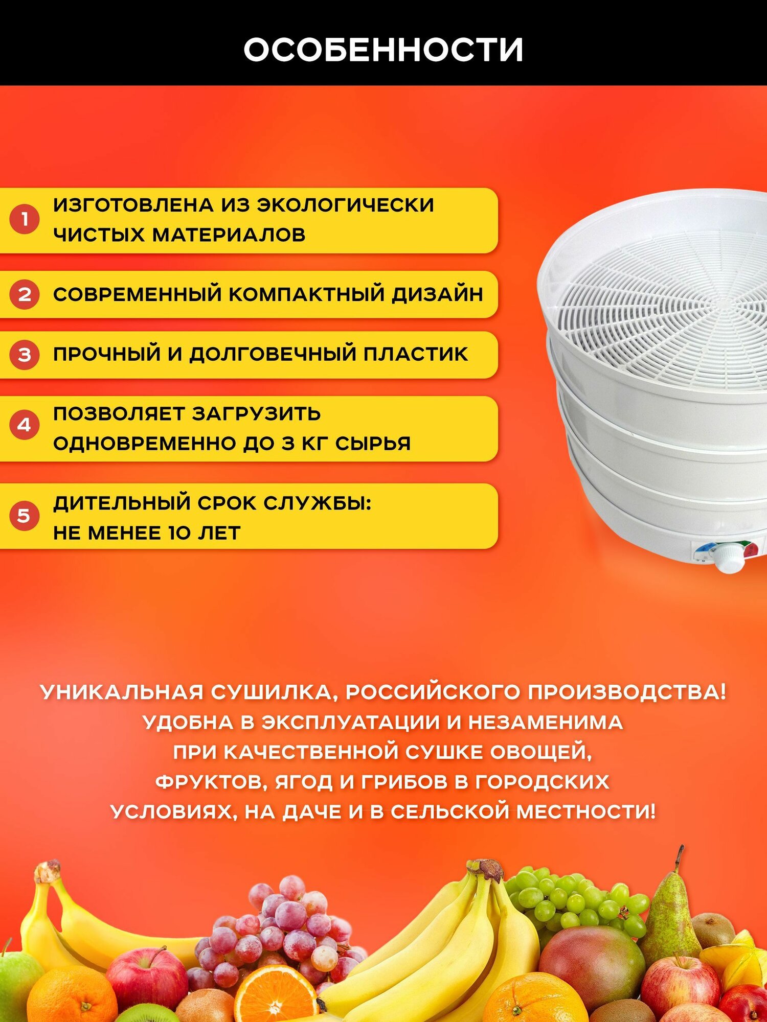 электросушилка для овощей и фруктов Ветерок 3 поддон.
