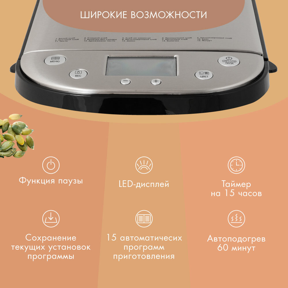 | Количество программ выпечки | 15 |