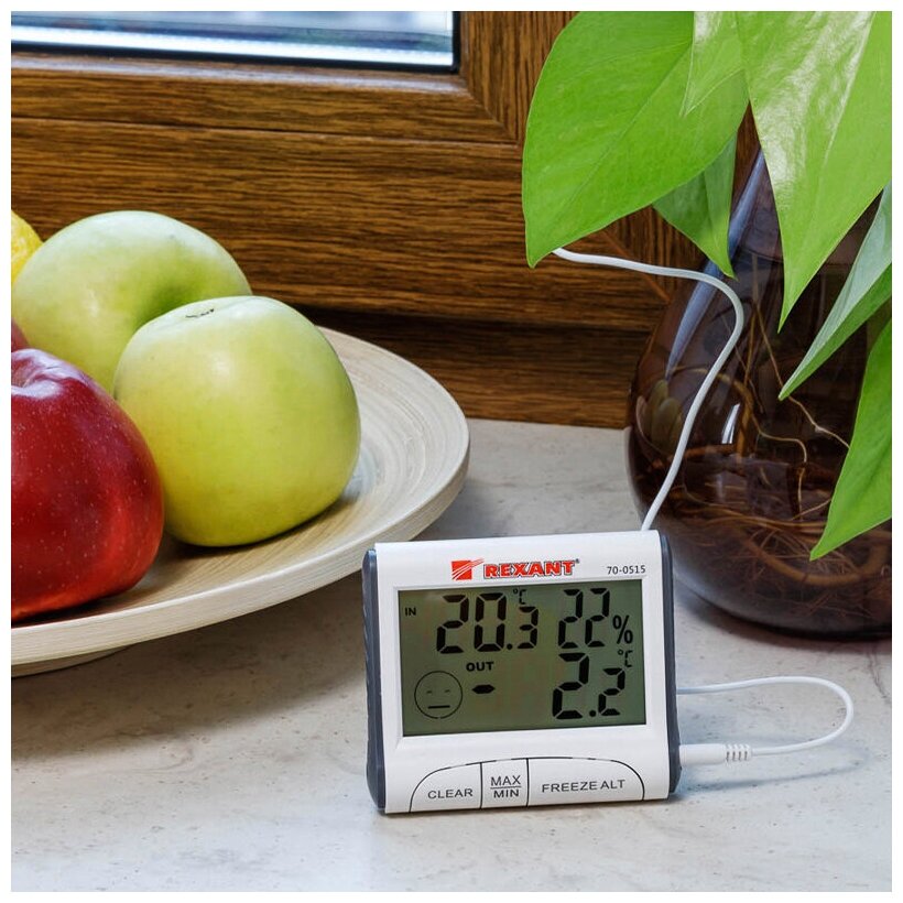 Термогигрометр комнатно-уличный REXANT с проводным выносным датчиком