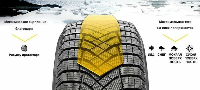 Гололед, снег проходит без проблем и фанатизма. Тормозит отлично. Для мягкой зимы - идеальная резина. |