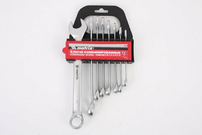 Набор ключей комбинированных, 8-19 мм, 8 шт, CrV, матовый хром Matrix