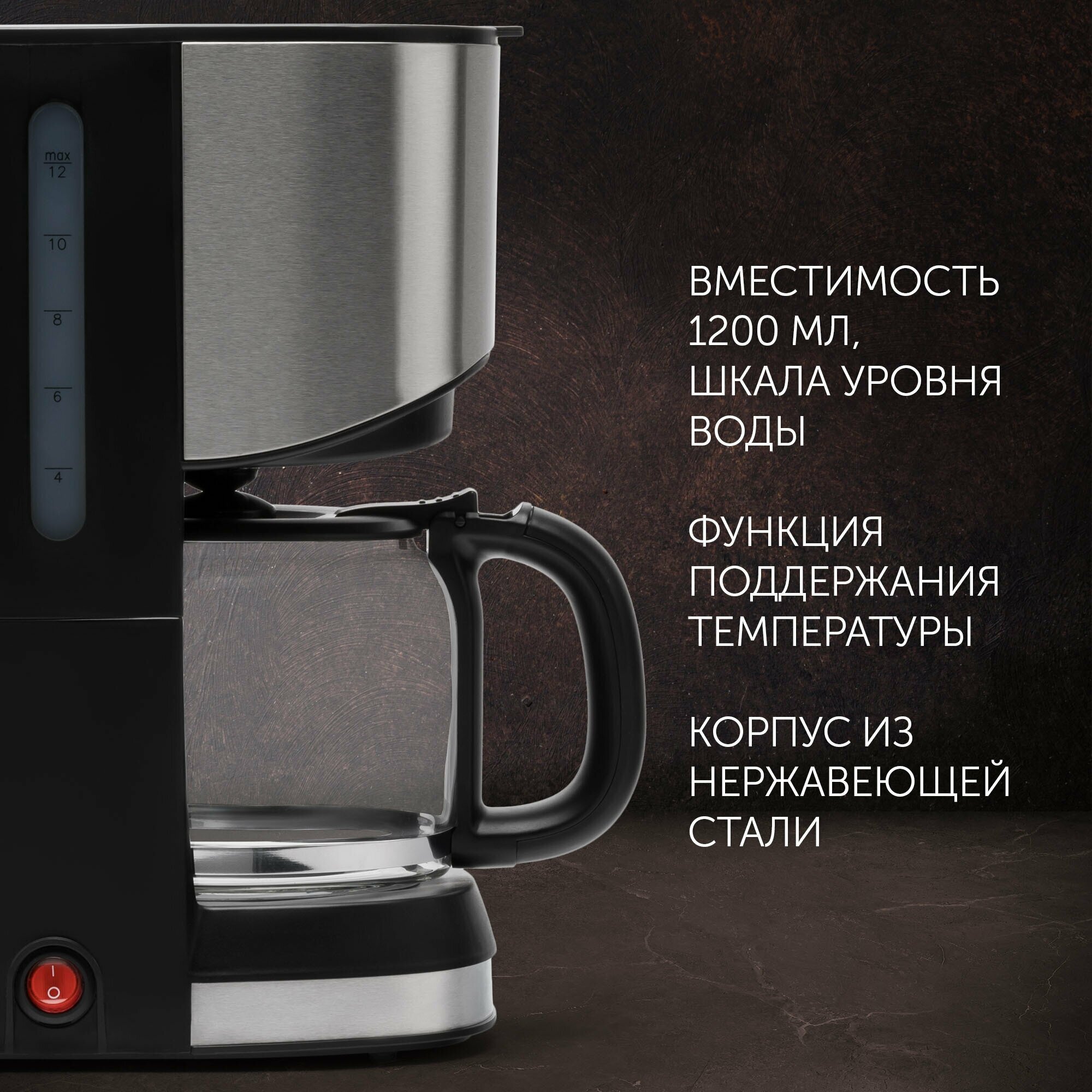Кофеварка POLARIS PCM 1215A, капельная, нержавеющая сталь / черный
