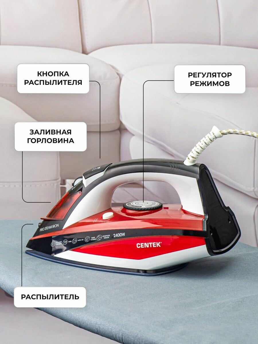 СохранитьУтюг Centek CT-2344 RED, 2400 Вт, подошва керамическая, красный интересное: