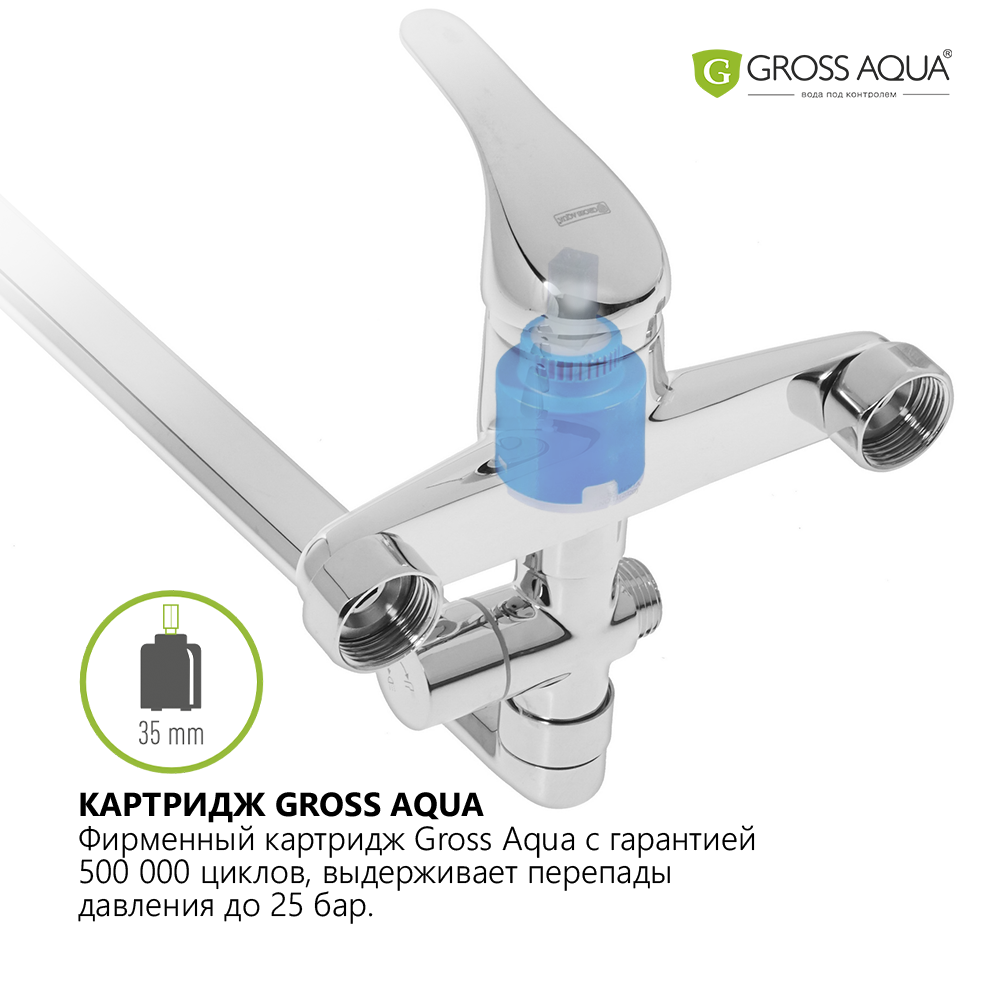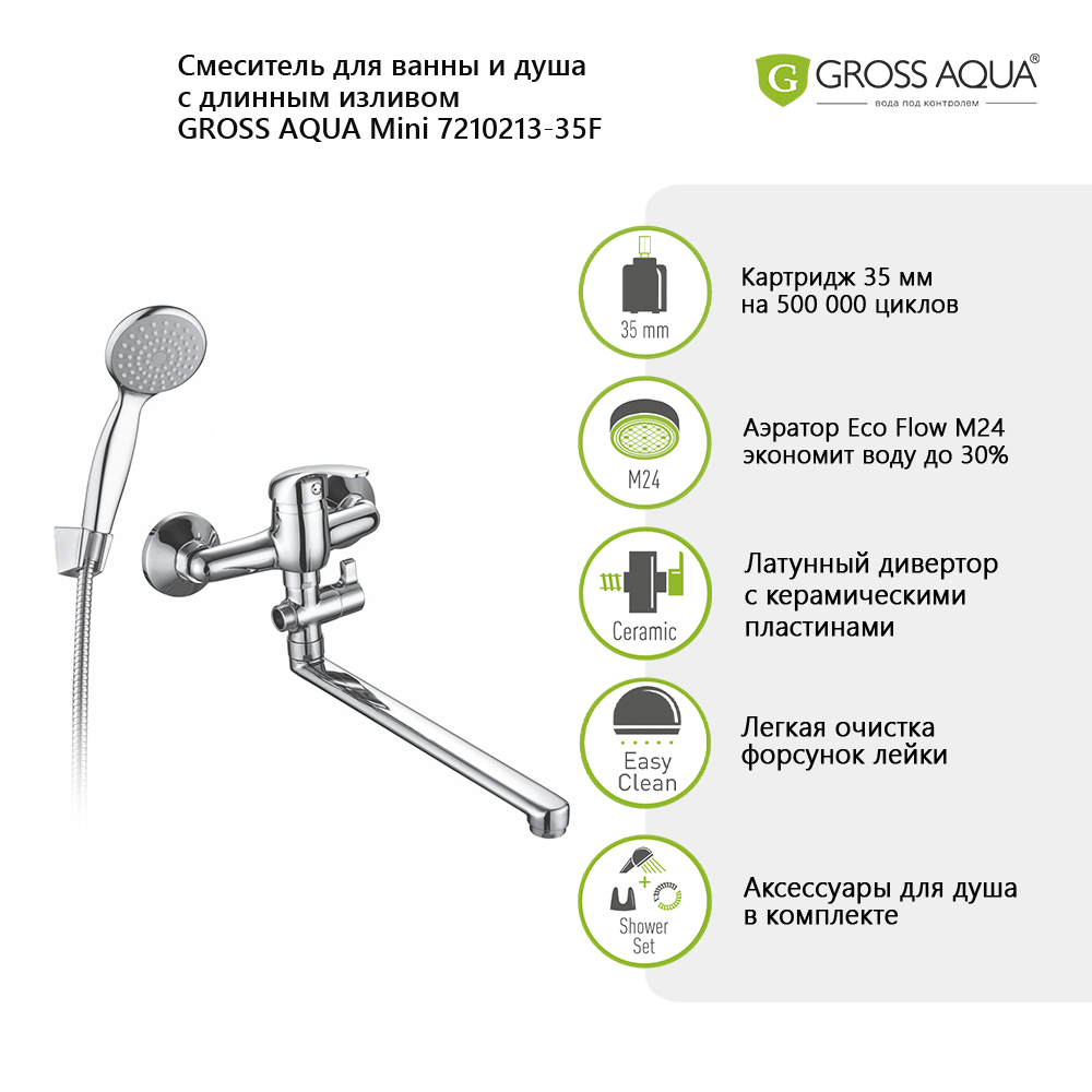 Смеситель GROSS AQUA Mini для ванны и душа с длинным изливом 350 мм 7210213-35F
