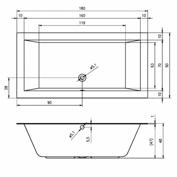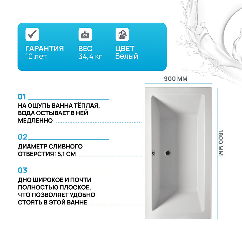 Акриловая ванна Riho Lugo 1800x900 без гидромассажа B134001005