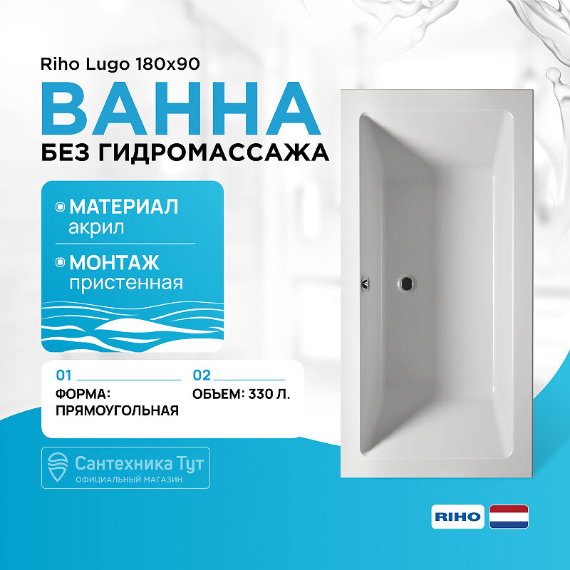 Акриловая ванна Riho Lugo 180x90 B134001005 (BT0300500000000) без гидромассажа