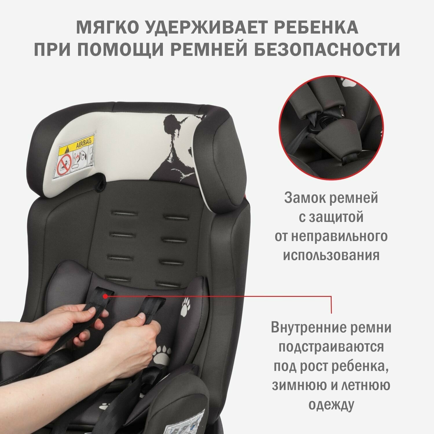 Детское автокресло SIGER "Диона" серо-бежевый, панда, 0-7 лет, 0-25 кг