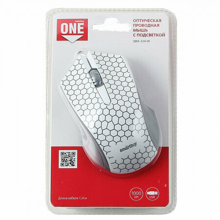 Мышь проводная Smartbuy 334 ONЕ USB белая, с подсветкой (SBM-334-W) /40