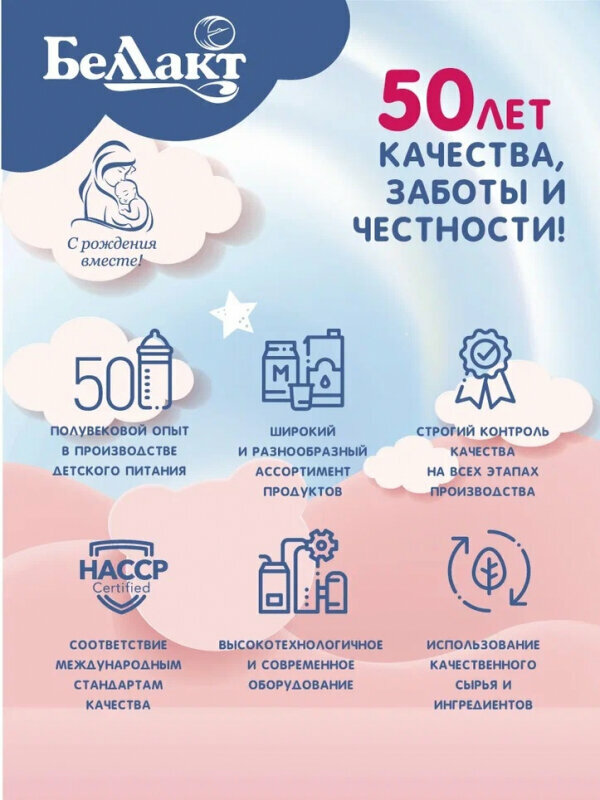 | Плюсы: | случайно попробовали дать ребенку Беллакт вместо нан безлактозного, ребенку (1 год) понравилось, теперь перешли на Беллакт. Белорусские продукты качественные и недорогие. Рекомендую (конечно убедитесь, что Вашему ребенку подходит) |